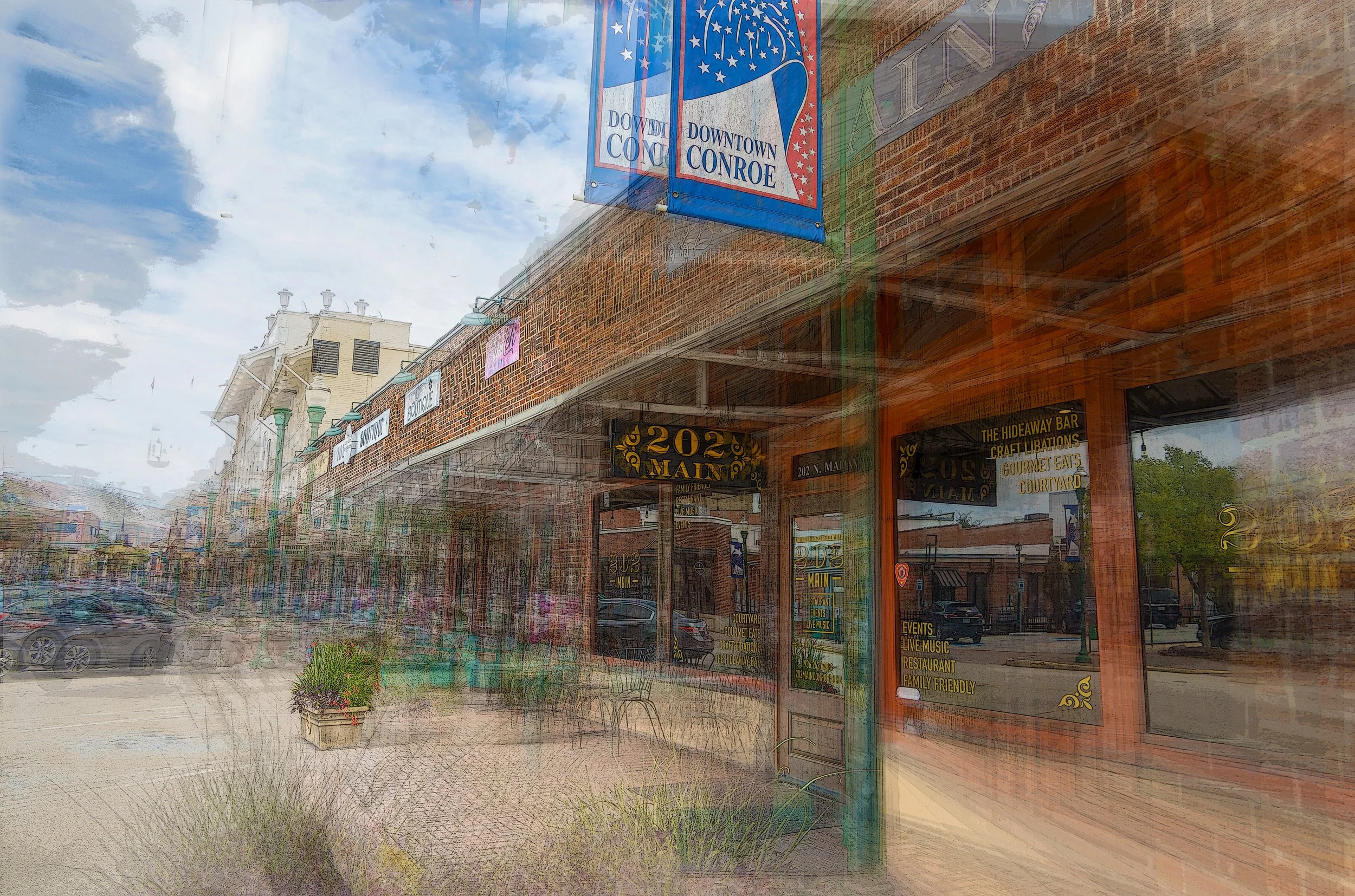 Street corner in downtown Conroe, Texas
